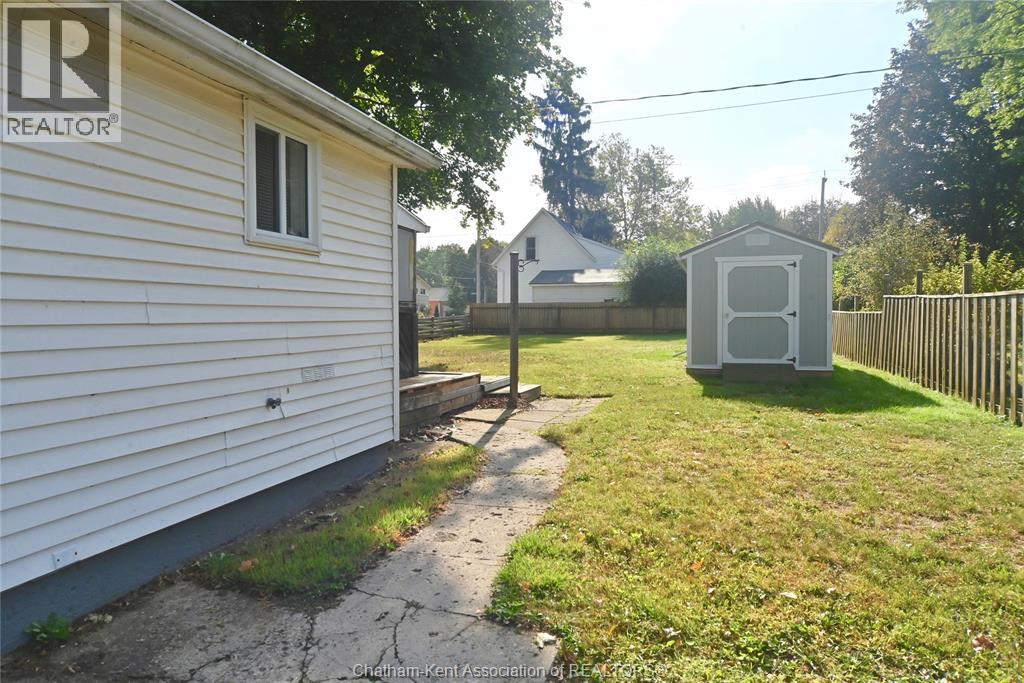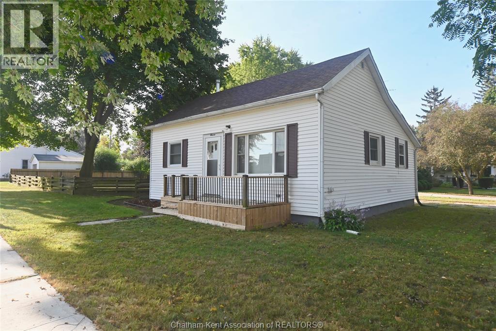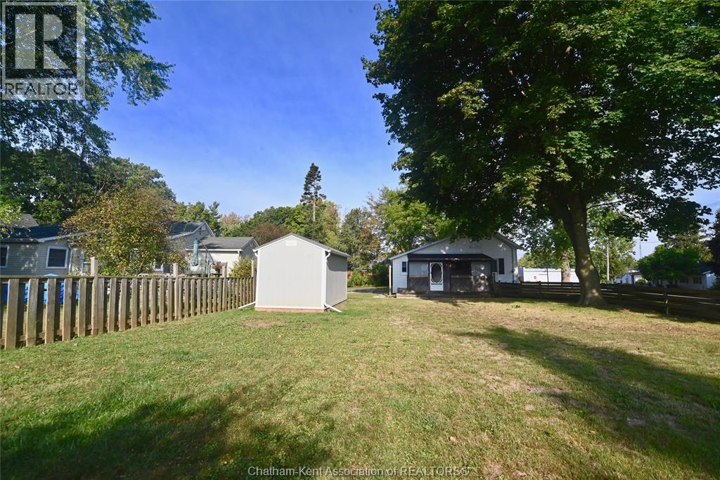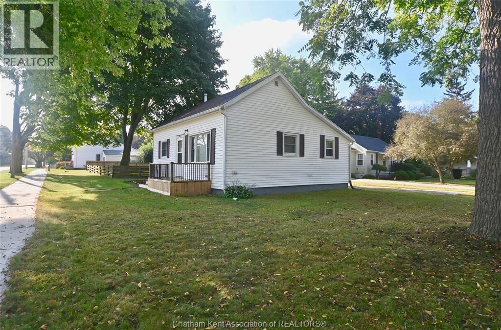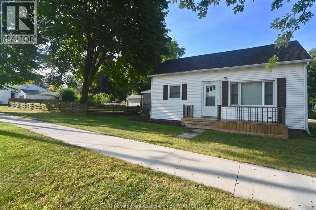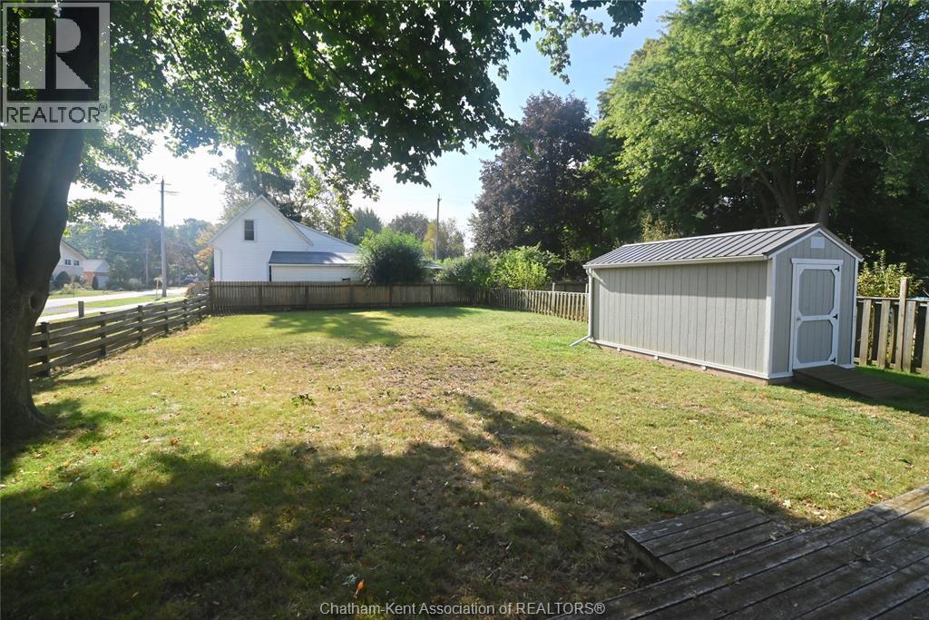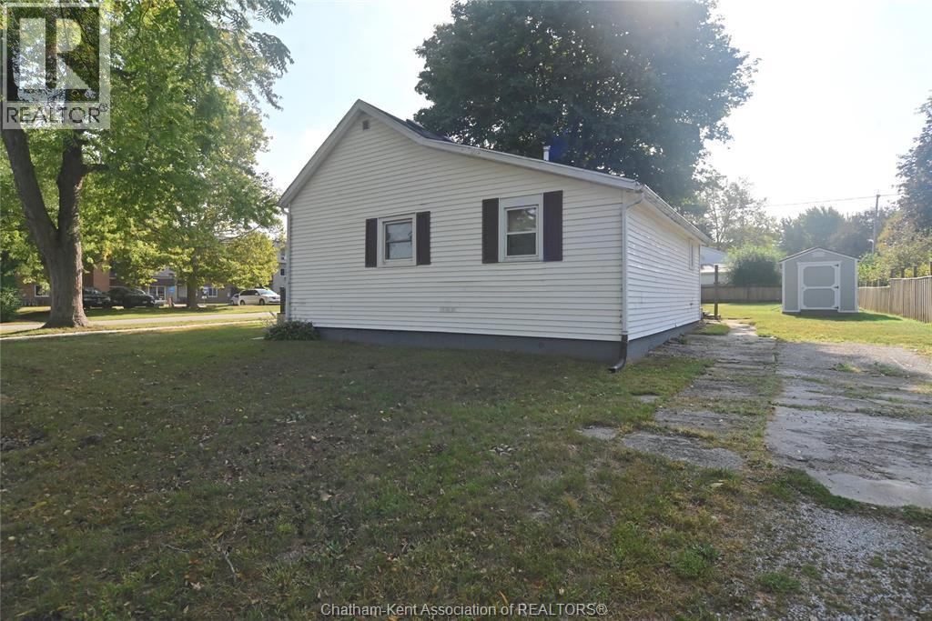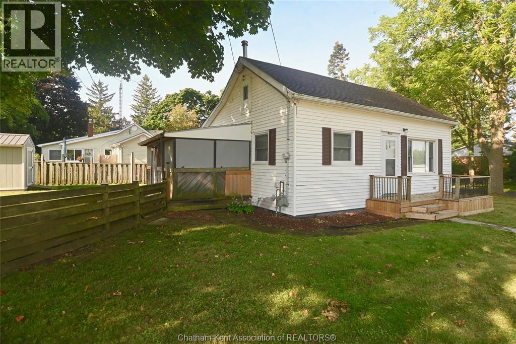 Come home to this sweet little 2 bedroom bungalow in a nice residential neighbourhood in beautiful Ridgetown, with the park and pool right around the corner and just a short walk to the shops on Main Street. Comfy and cozy with an eat-in kitchen, large living room with updated weathered wood style flooring and a huge picture window view to the street. Full bathroom with an accessible walk-in tub/shower that's got it all, heat, lights, and jets for some spa therapy. The screened in back porch makes a great spot to sit and watch the squirrels roam in the big fenced yard under mature tree shade. Well updated so all of the dreaded homeowner expenses are already taken care of, just enjoy affordable low maintenance living in this little gem with all appliances included. Shingles done in 2016, furnace in 2019 and a new water softener and filtration system in the partial basement with laundry and lots of storage space. The new shed also offers lots of room for your outdoor storage needs. This adorable spot is move in ready and waiting on its next owner. (id:55464)