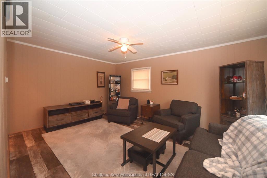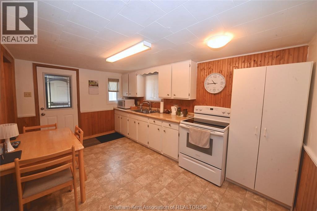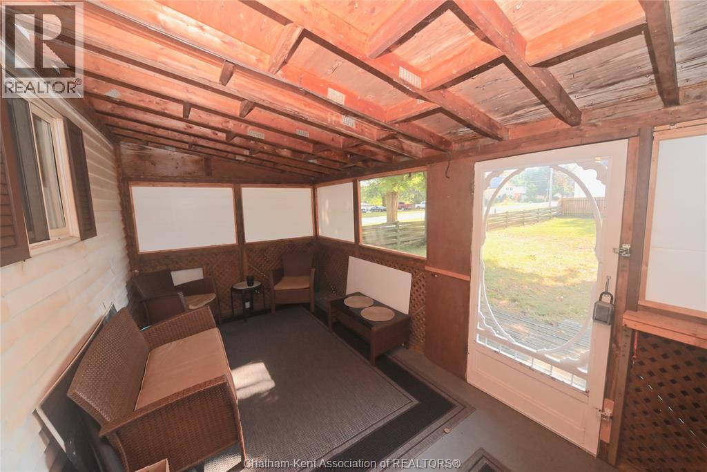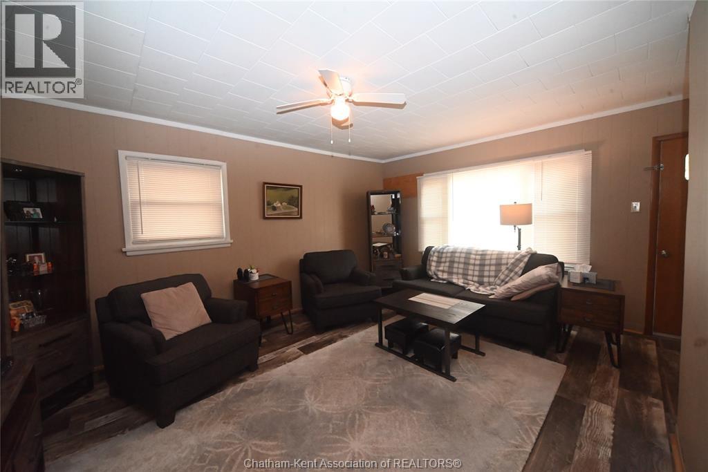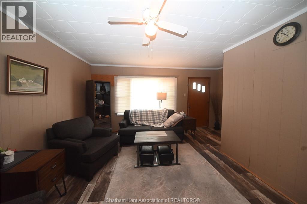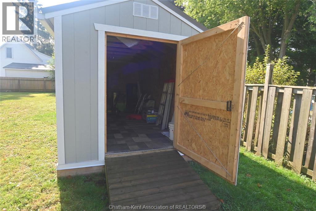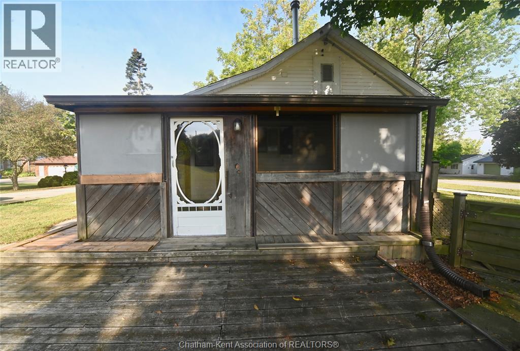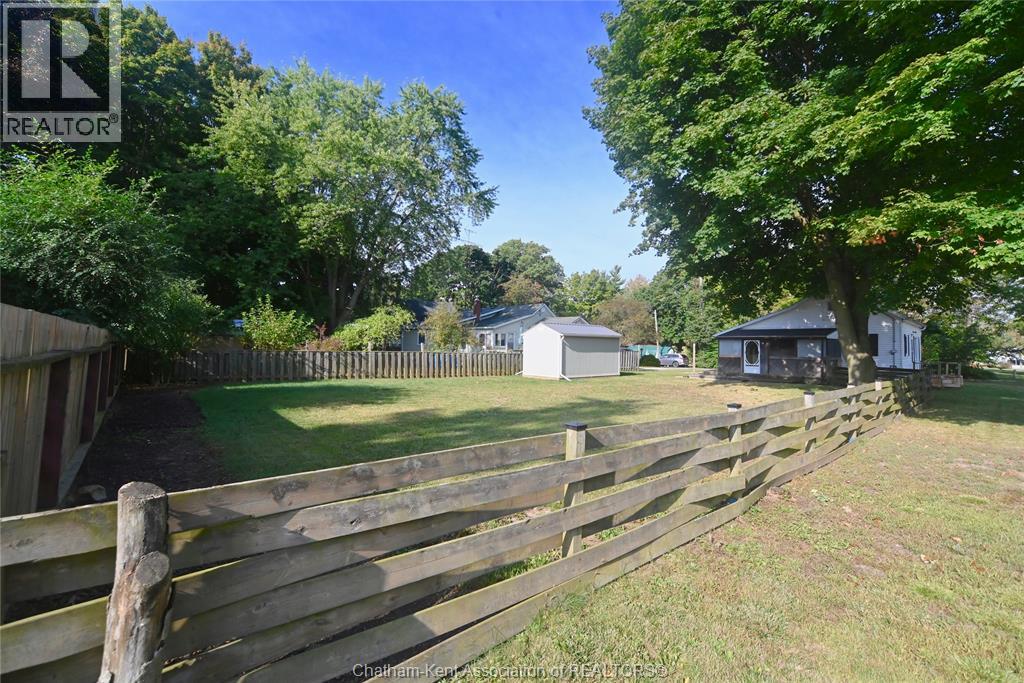Come home to this sweet little 2 bedroom bungalow in a nice residential neighbourhood in beautiful Ridgetown, with the park and pool right around the corner and just a short walk to the shops on Main Street. Comfy and cozy with an eat-in kitchen, large living room with updated weathered wood style flooring and a huge picture window view to the street. Full bathroom with an accessible walk-in tub/shower that's got it all, heat, lights, and jets for some spa therapy. The screened in back porch makes a great spot to sit and watch the squirrels roam in the big fenced yard under mature tree shade. Well updated so all of the dreaded homeowner expenses are already taken care of, just enjoy affordable low maintenance living in this little gem with all appliances included. Shingles done in 2016, furnace in 2019 and a new water softener and filtration system in the partial basement with laundry and lots of storage space. The new shed also offers lots of room for your outdoor storage needs. This adorable spot is move in ready and waiting on its next owner. (id:55464)