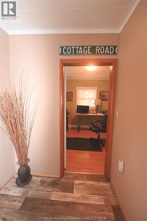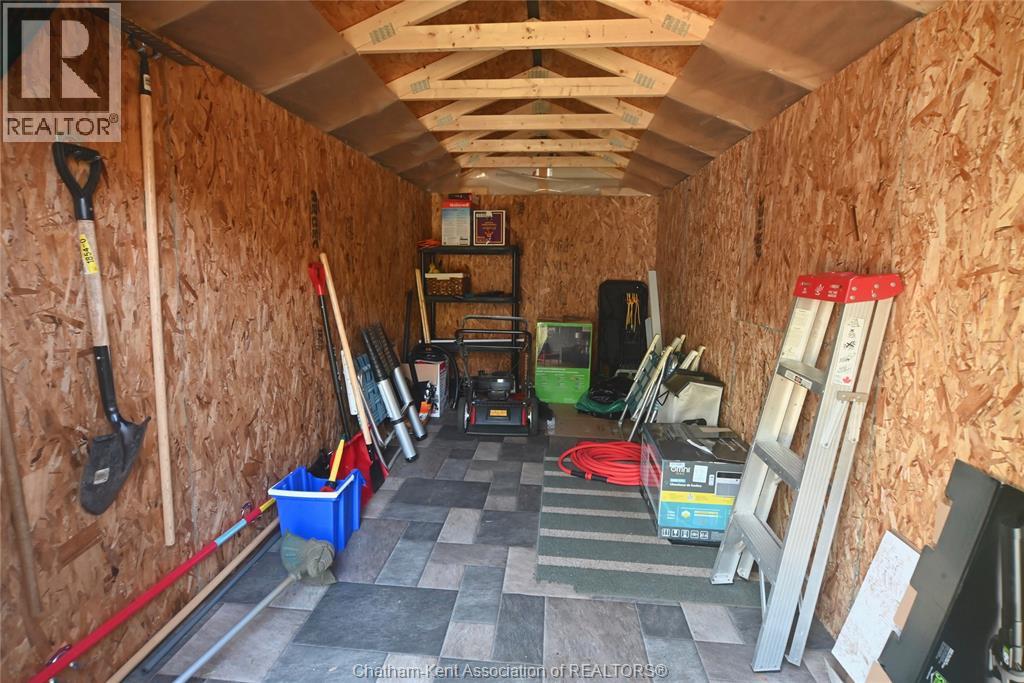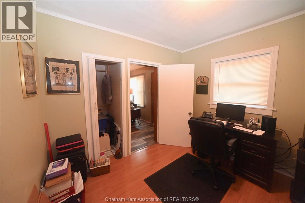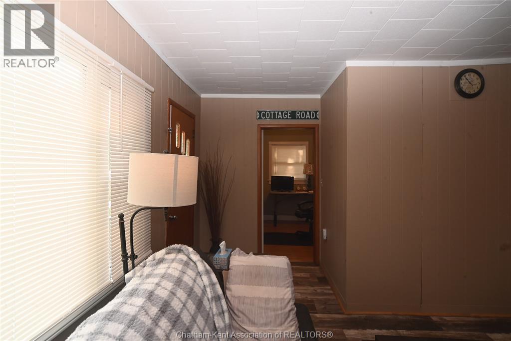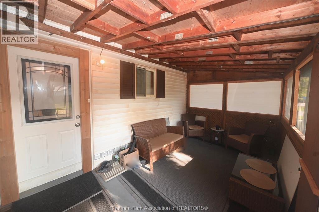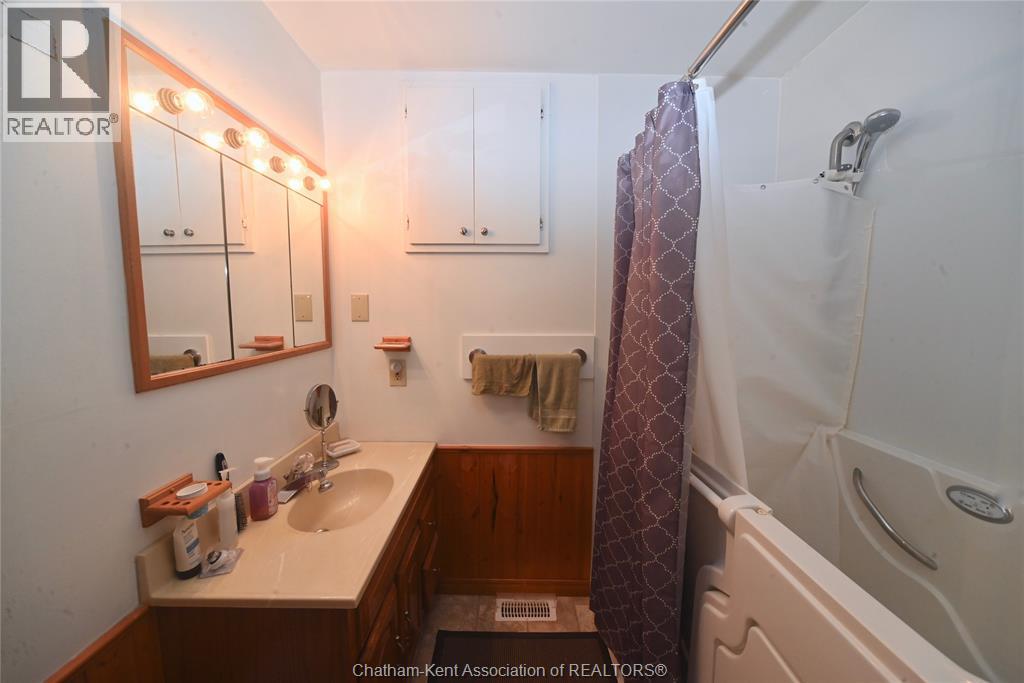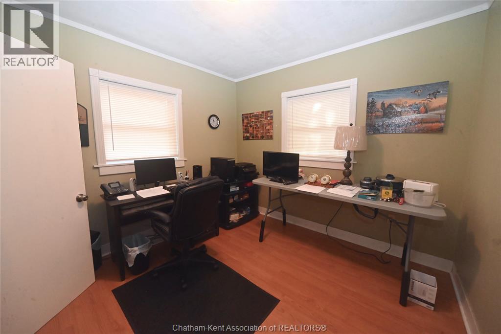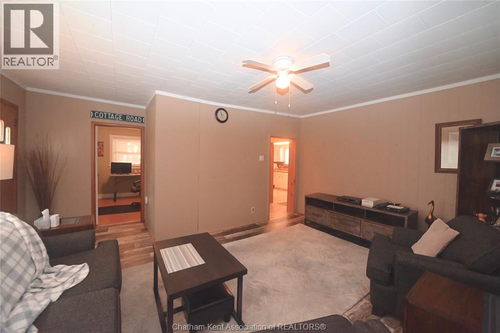 Come home to this sweet little 2 bedroom bungalow in a nice residential neighbourhood in beautiful Ridgetown, with the park and pool right around the corner and just a short walk to the shops on Main Street. Comfy and cozy with an eat-in kitchen, large living room with updated weathered wood style flooring and a huge picture window view to the street. Full bathroom with an accessible walk-in tub/shower that's got it all, heat, lights, and jets for some spa therapy. The screened in back porch makes a great spot to sit and watch the squirrels roam in the big fenced yard under mature tree shade. Well updated so all of the dreaded homeowner expenses are already taken care of, just enjoy affordable low maintenance living in this little gem with all appliances included. Shingles done in 2016, furnace in 2019 and a new water softener and filtration system in the partial basement with laundry and lots of storage space. The new shed also offers lots of room for your outdoor storage needs. This adorable spot is move in ready and waiting on its next owner. (id:55464)