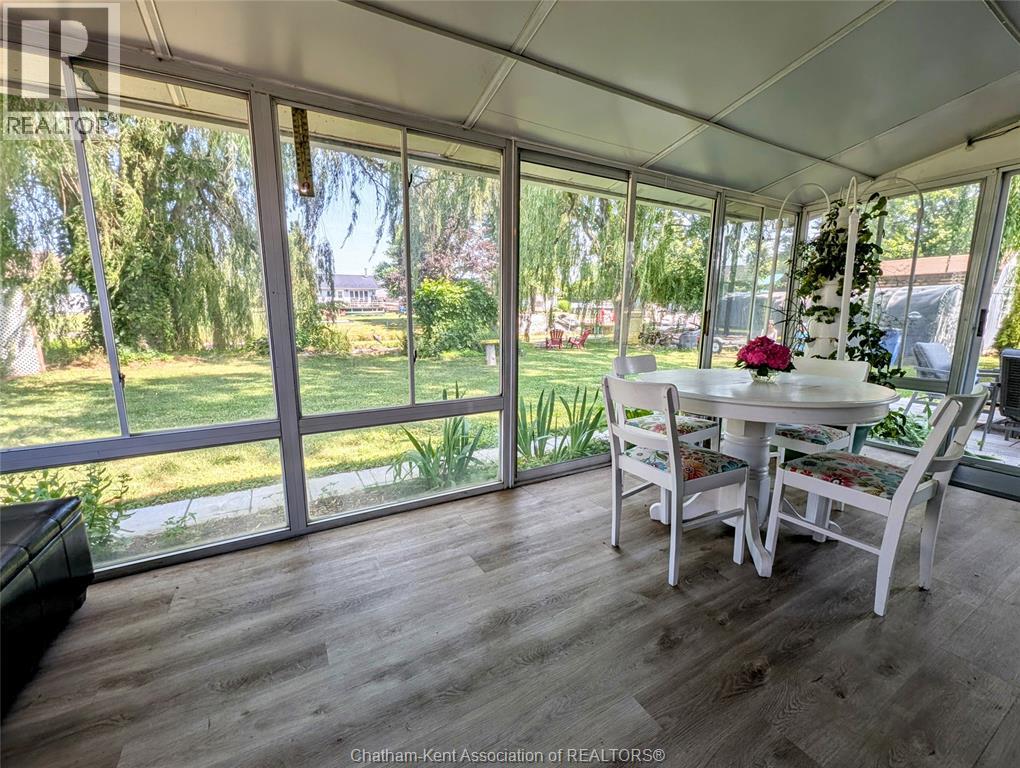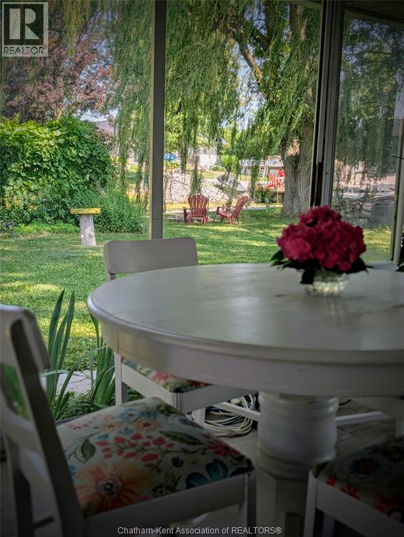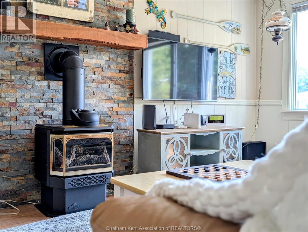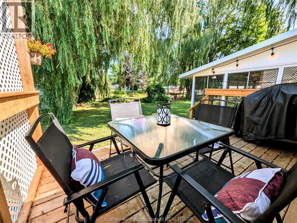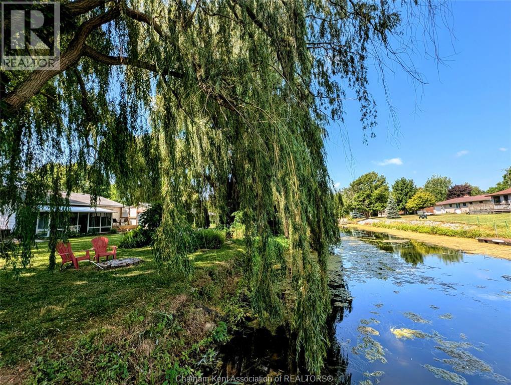 Welcome to this charming waterfront property in the highly sought-after Rondeau Bay Estates—a serene retreat offering privacy, comfort, and direct canal access to stunning Rondeau Bay and beyond. This 3-bedroom, 1-bathroom home is perfectly suited for year-round living or a seasonal escape, surrounded by nature on a peaceful, tree-lined 100'x150' lot - conveniently located minutes from Blenheim and Ridgetown. The interior features a cozy open-concept design, highlighted by a gas fireplace that adds warmth and character anchoring the main living area. The kitchen and dining spaces flow seamlessly for easy entertaining, while a spacious 3-season sunroom provides the perfect place to relax and enjoy the changing views throughout spring, summer, and fall. Primary bedroom has access through patio doors to the deck with views of the canal and backyard. Updates to the home include newer windows, dog inground fence system and a modern updated bathroom. Step outside to your private backyard oasis, where majestic willows offer shade and privacy, and a tranquil pond enhances the natural beauty of the setting. Whether enjoying quiet mornings with coffee or evenings by the firepit roasting s’mores, this outdoor space is ideal for peaceful living and making memories. A private dock offers direct access to the canal—perfect for boating, fishing, or exploring Rondeau Bay by kayak. Just a quick 10-minute boat ride takes you to the open waters of Lake Erie, home to some of the region’s best Walleye fishing—or Seagull Island home to a secluded beach. This unique property offers a rare opportunity to live surrounded by nature, with easy access to water adventures and community amenities. Whether you're seeking a lifestyle of leisure, recreation, or relaxation, this property offers it all in one of the region’s most desirable waterfront communities. Annual association fee of $400, which covers canal dredging and maintenance of the private community marina, park and golf course. (id:55464)