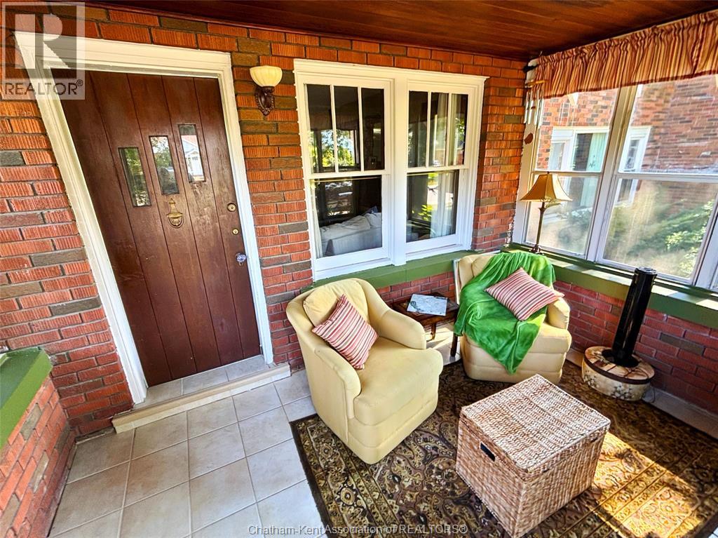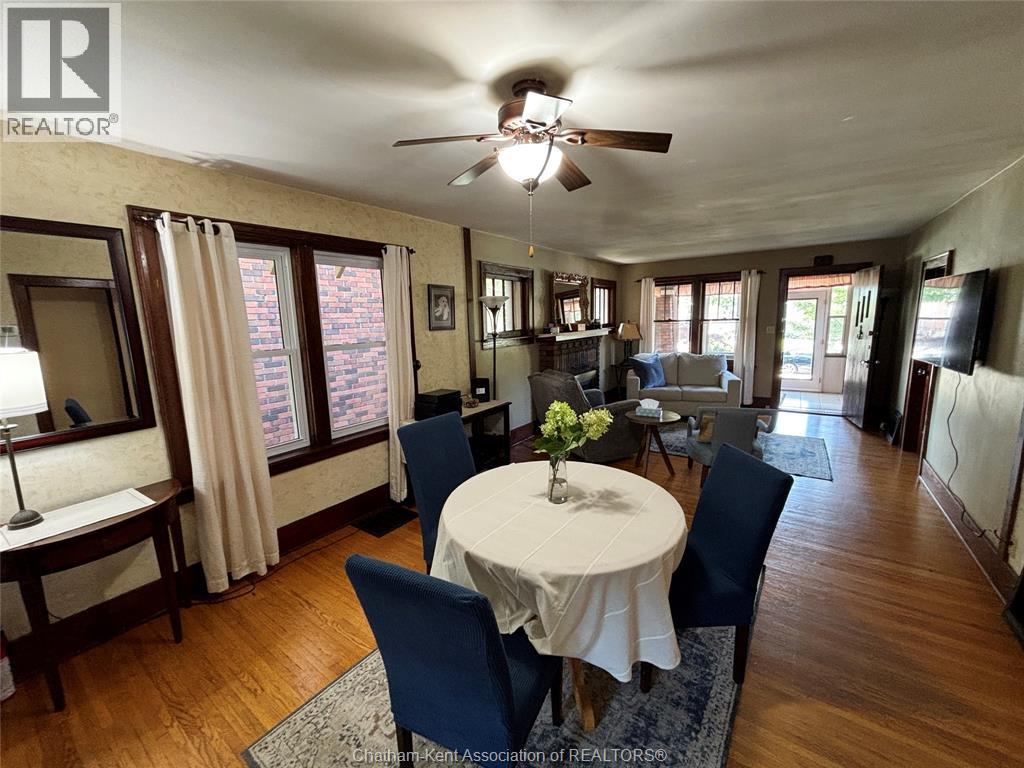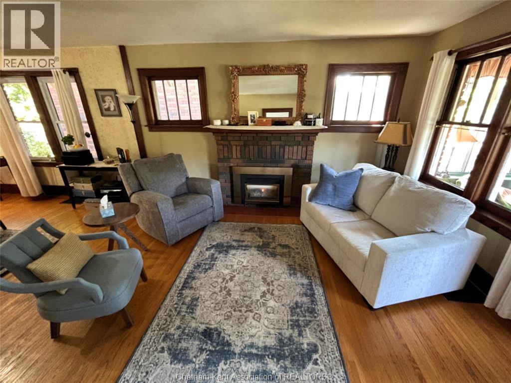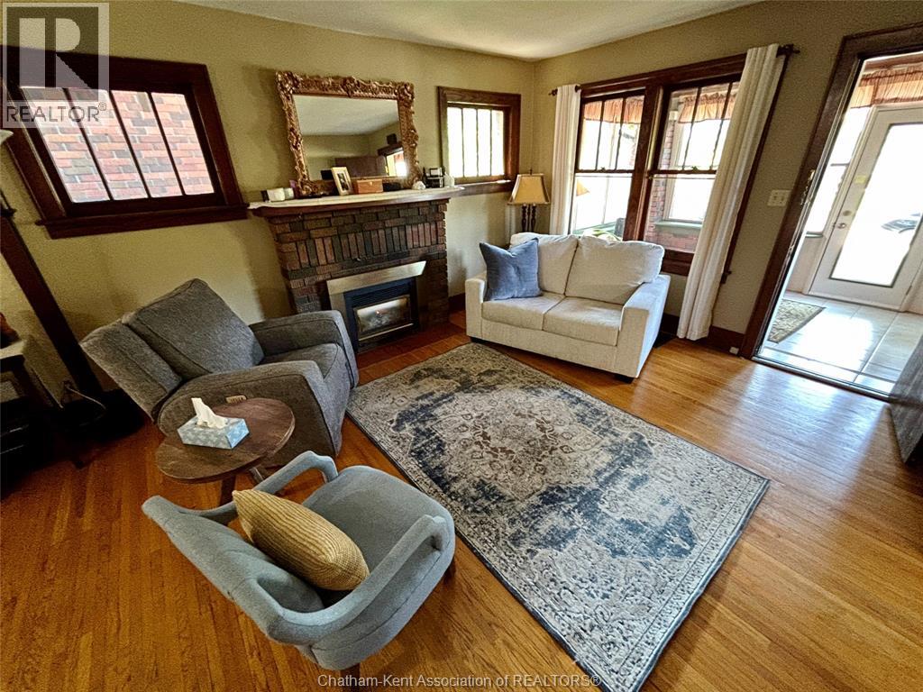 This timeless 1930s Craftsman style bungalow, offers 2 bedrooms and 1 bathroom in a distinguished, Chatham neighbourhood. Entering through the enclosed front porch, you’ll see its charm has not been lost over the years. Inside, some original details such as glass doorknobs, classic baseboards and moulding, and hardwood floors remain intact. The main floor is complete with a cozy living room with a gas fireplace seamlessly connected to the dining area and a rejuvenated kitchen, for comfortable everyday living. The spacious primary bedroom, thoughtfully created by combining two original rooms, offers enhanced comfort and functionality Off the hallway, a modernized bathroom and a versatile second room, ideal as a bedroom, guest room, or home office complete the layout. The basement includes thoughtfully designed laundry and utility area, designed to maximize space and storage. A back stairwell leads to a fully fenced yard, complete with tasteful, low-maintenance landscaping for a private outdoor retreat. This home is perfect for those who appreciate craftsmanship and charm, making it a rare find. (id:55464)