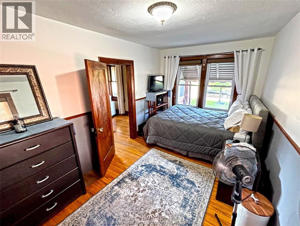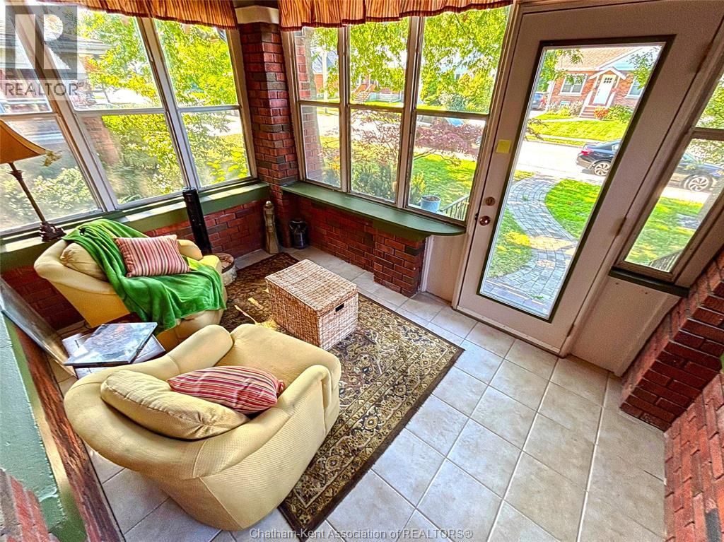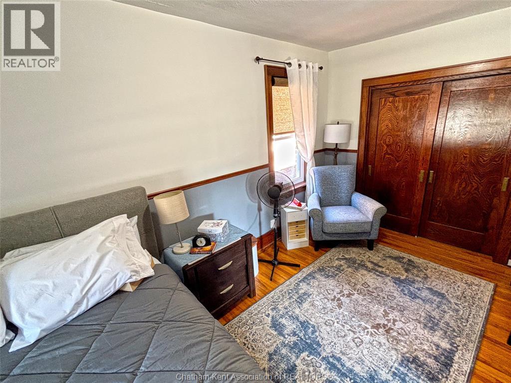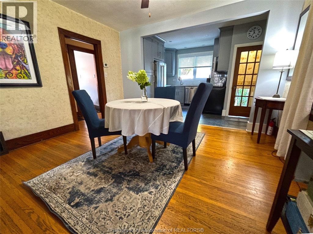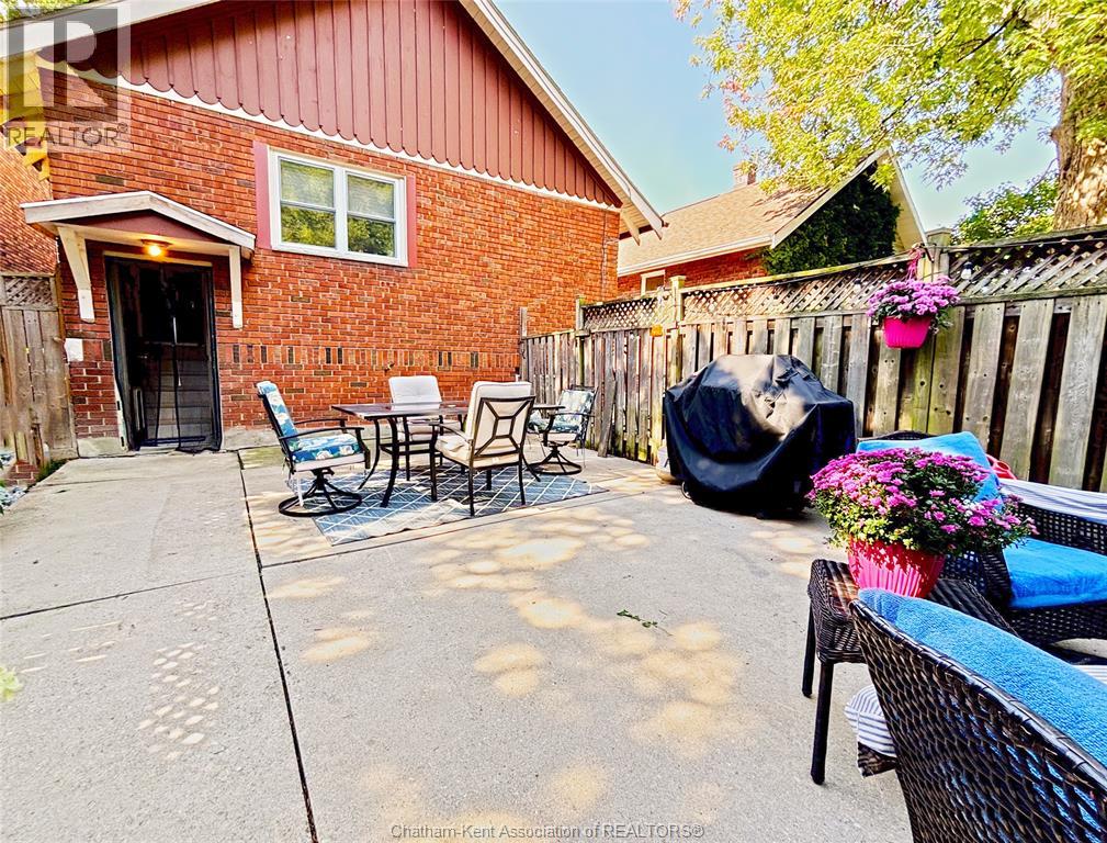 This timeless 1930s Craftsman style bungalow, offers 2 bedrooms and 1 bathroom in a distinguished, Chatham neighbourhood. Entering through the enclosed front porch, you’ll see its charm has not been lost over the years. Inside, some original details such as glass doorknobs, classic baseboards and moulding, and hardwood floors remain intact. The main floor is complete with a cozy living room with a gas fireplace seamlessly connected to the dining area and a rejuvenated kitchen, for comfortable everyday living. The spacious primary bedroom, thoughtfully created by combining two original rooms, offers enhanced comfort and functionality Off the hallway, a modernized bathroom and a versatile second room, ideal as a bedroom, guest room, or home office complete the layout. The basement includes thoughtfully designed laundry and utility area, designed to maximize space and storage. A back stairwell leads to a fully fenced yard, complete with tasteful, low-maintenance landscaping for a private outdoor retreat. This home is perfect for those who appreciate craftsmanship and charm, making it a rare find. (id:55464)