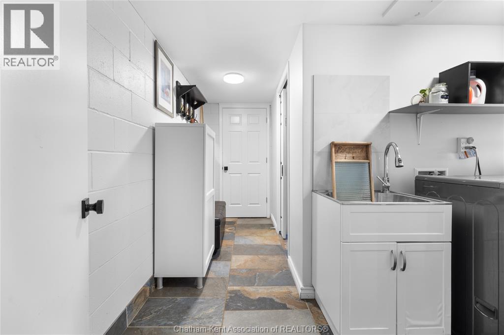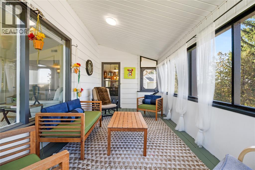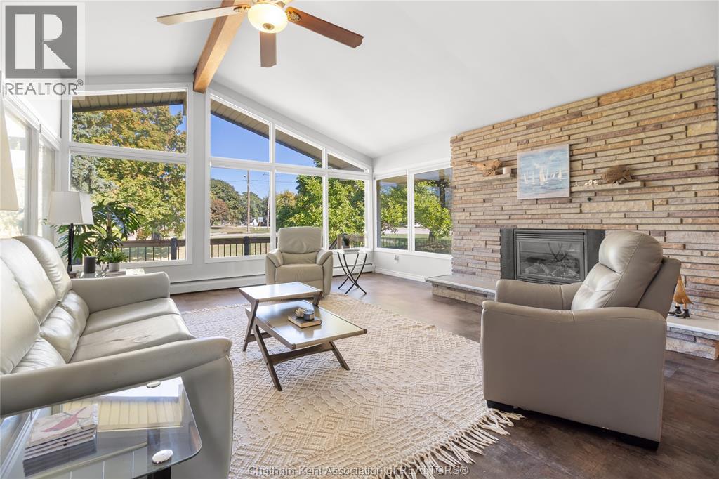 Discover this unique brick ranch-style home set on a generous ½-acre lot, offering space, comfort, and convenience. This 3-bedroom, 2-bath home features a thoughtfully designed main floor with a custom eat-in kitchen with granite countertops, seamlessly connected to a bright sunroom overlooking the backyard. The inviting living room is highlighted by cathedral ceilings and a stunning gas fireplace—perfect for family gatherings. All bedrooms are conveniently located on the main level, along with a 4-piece bath. The walk-out lower level adds even more living space and convience, featuring a comfortable family room with a wood-burning fireplace, newly updated 3 piece bath, laundry area, and access to a rear covered porch for year-round enjoyment. A spacious 30’ x 22’ attached double garage with direct basement entry provides excellent parking and workshop potential. The horseshoe driveway and a shed with lower-level storage add extra functionality to the property. Located just 7 minutes from Blenheim, 20 minutes from Chatham, and 10 minutes from Erieau’s beaches, this home offers the perfect balance of country living with easy access to town amenities. (id:55464)