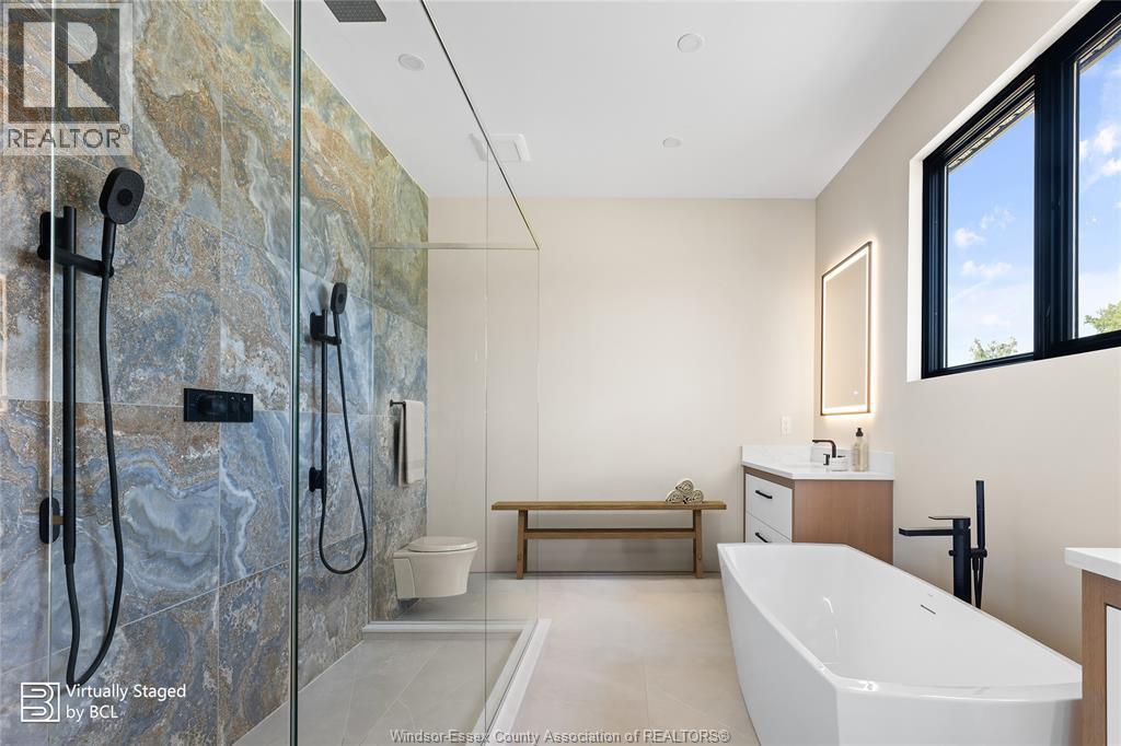 Experience timeless quality and superior craftsmanship in this exceptionally built VLC Custom Home, located in the prestigious Laurier Heights of LaSalle. Crafted with superior-quality finishes and attention to detail, this stunning 2-storey residence offers over 3,400 SQ FT of thoughtfully designed living space, perfect for modern family life and elegant entertaining. This unique home features 4 spacious bedrooms each with their own private ensuite, including a luxurious spa-like primary suite with double walk-ins. The main level showcases a functional open-concept layout with custom, designer kitchen, complete with a butler’s pantry, dining area, living space with dual gas fireplaces and dedicated front office area. Extend your living outdoors with a covered patio, ideal for gatherings and family memories. Additional highlights include 3-car tandem garage with inside entry, garage & basement ready for in-floor heating, fully integrated wiring for security/audio. Basement nearly complete, ready for your finishing touches. Located on a quiet cul-de-sac minutes from the US border, trails, shopping, and more. Contact the listing agents for a full list of quality finishes and book your showing to experience this uniquely built home for yourself. (id:55464)