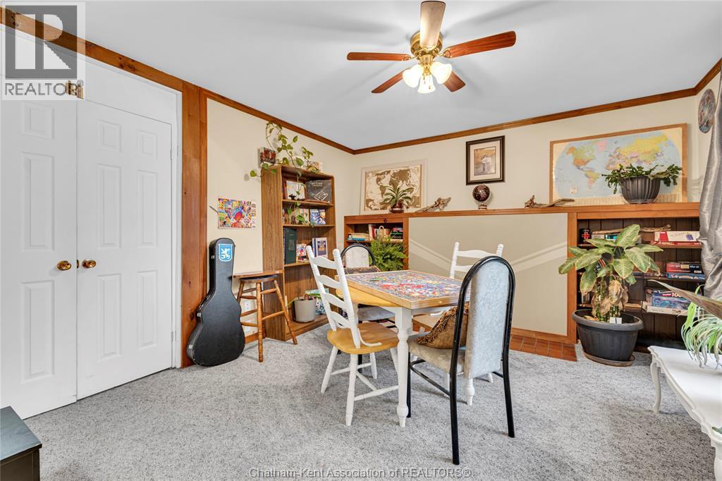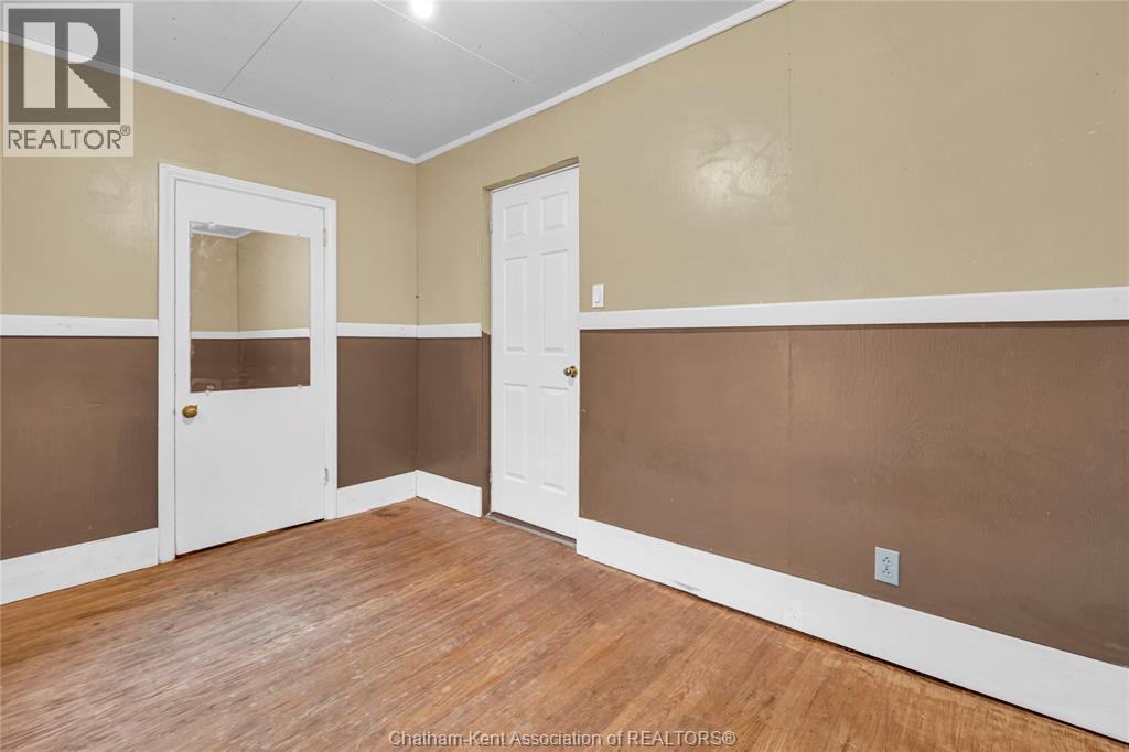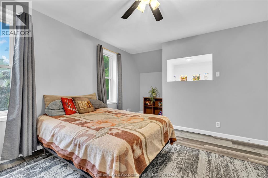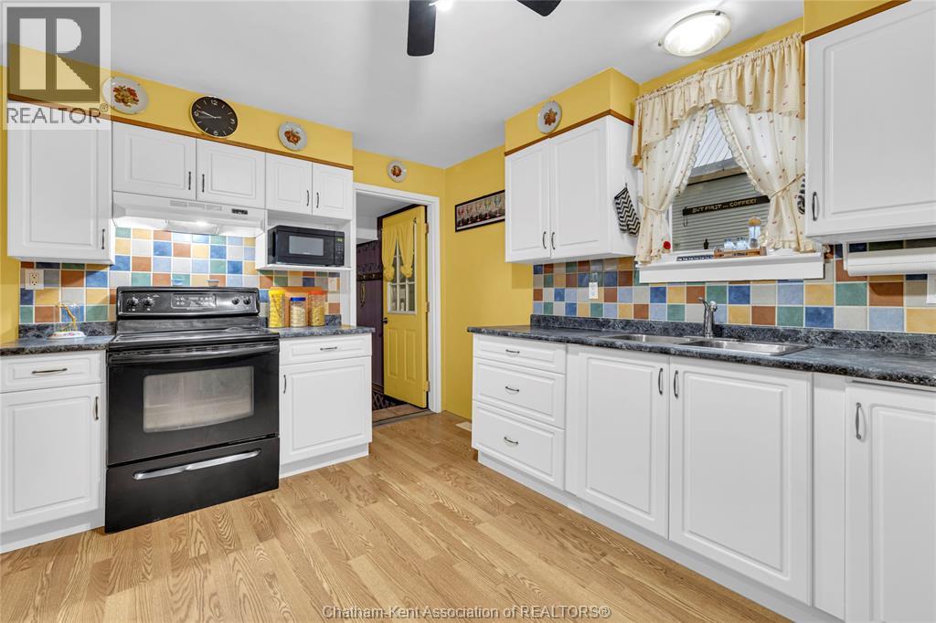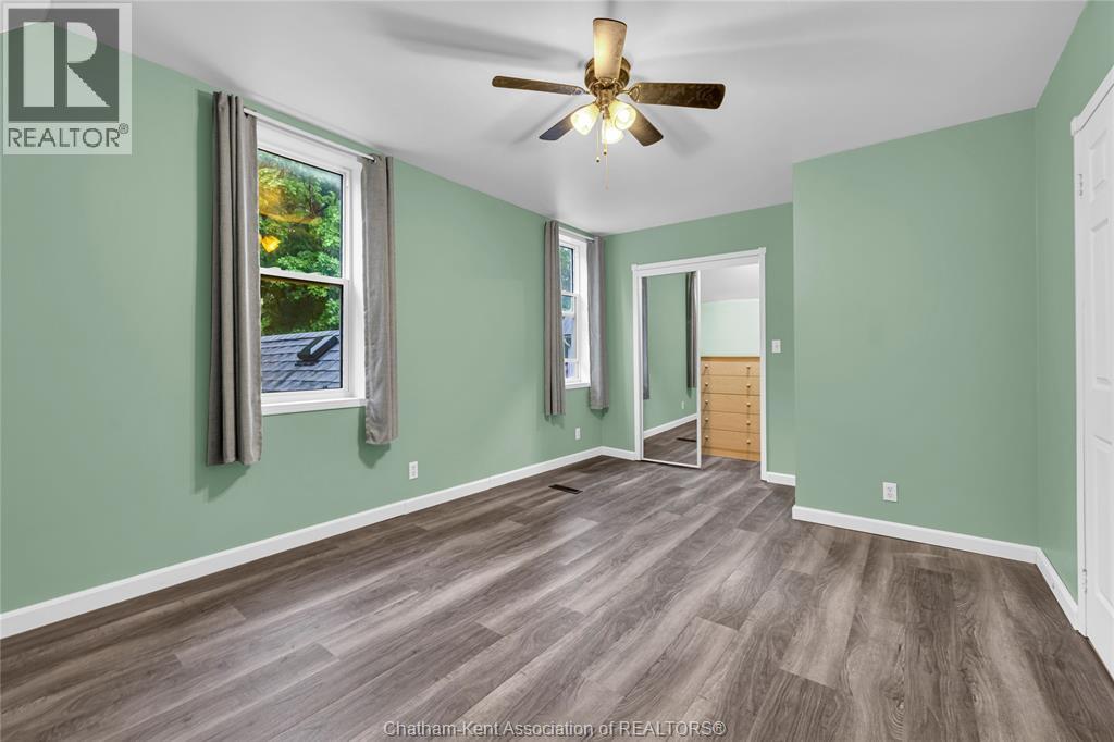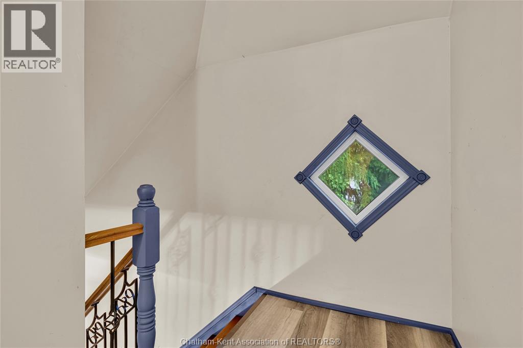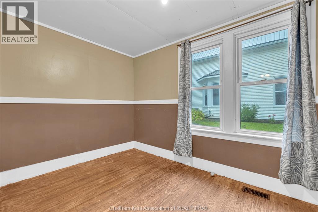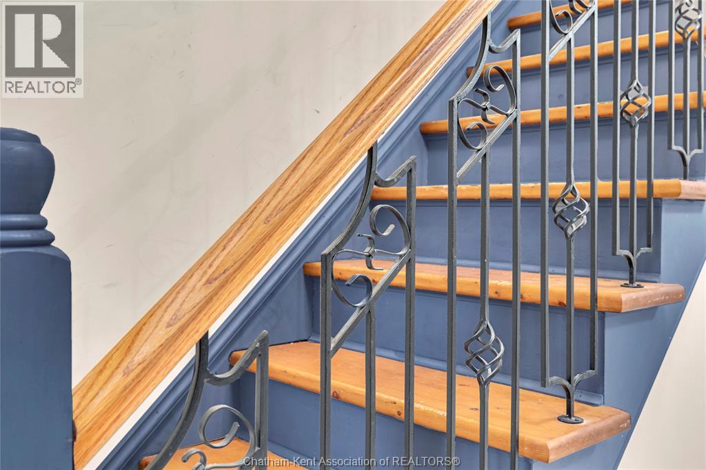 Escape the city to 25 Victoria Ave in Ridgetown, where architectural charm meets small-town living. Set on a mature, 1/3+ acre lot on one of Ridgetown's most desirable streets, this well-maintained 5-bedroom, 2-bathroom home offers a rare blend of history, space, and functionality. Walking into the generous foyer, you are greeted by an impressive original staircase and railing leading to the formal sitting room with a large bay window and a built-in library. A brick & stone wood-burning fireplace is an impressive feature of the large living room and is a timeless addition to this stately home. The functional kitchen offers plenty of space as well as an electric or gas stove hookup. Ground-level access to the backyard, 3 good-sized bedrooms, a 4-piece bath, and main floor laundry/mud room & access to the full basement round out the main level. The 2nd level of this grand home offers another 4-piece bathroom and 2 additional large bedrooms, each with large closets and plenty of natural light. The detached double garage is perfect for a mechanic or carpenter with hydro, fixed shelving, a long workbench, cement floor, and wood-stove chimney hookup, delivering all the modern amenities your handyman needs. The large back & side yard of this 1/3+ acre property is partially fenced and treed with perennial flowers & the large (partially shared) driveway has additional parking for 3+ vehicles. Additional features and upgrades include hardwood flooring throughout most of the main level, 200 AMP Service, bathrooms renovated 2023-2024, roof 2024, garage roof 2023, and new flooring on the 2nd floor 2024-2025. Attach Schedule B to all offers. Seller reserves the right to accept or reject any offer. In the event the listing brokerage introduces the buyer to the property by way of a private showing, 50% of the selling office commission will be withheld and payable to the listing brokerage. (id:55464)