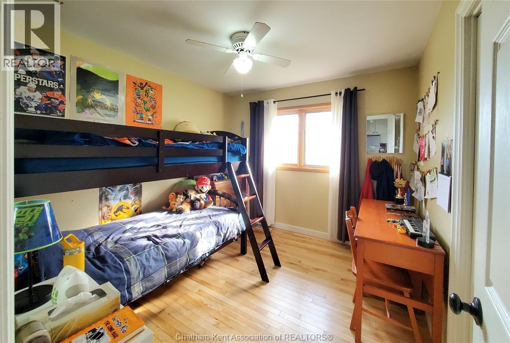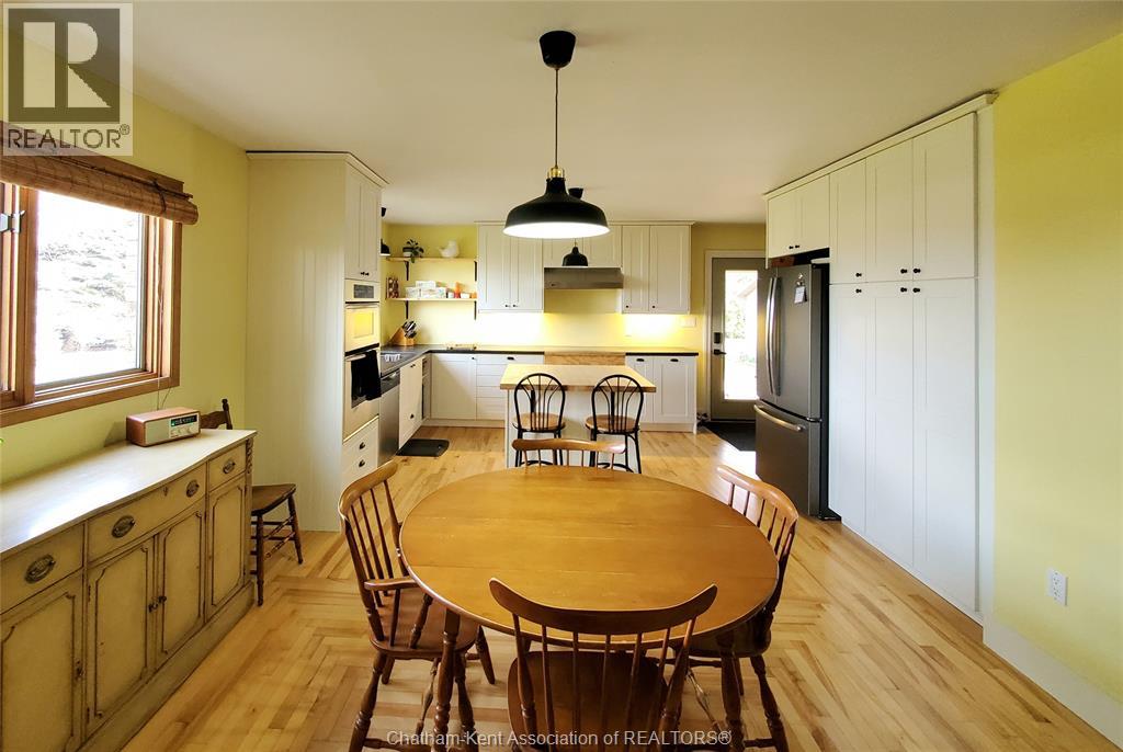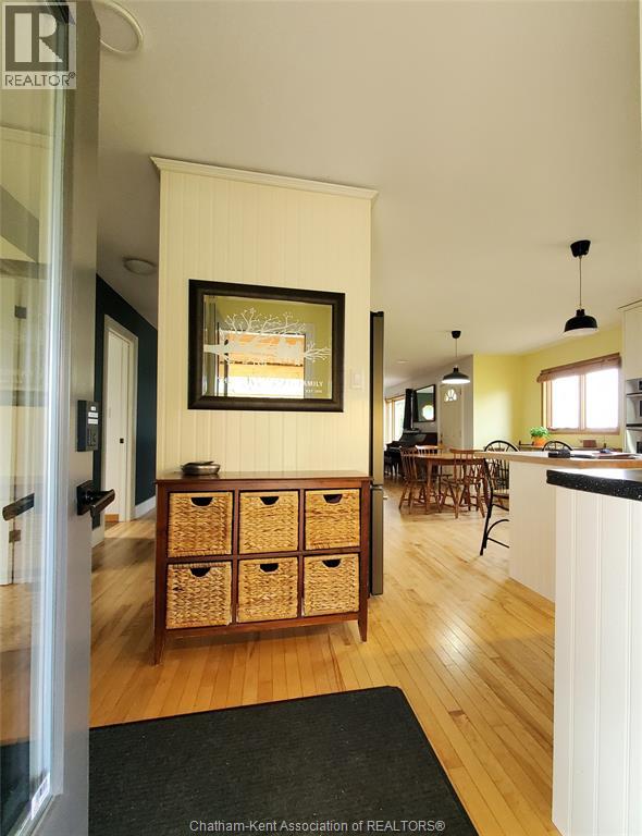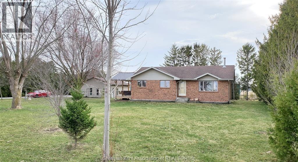 Looking for space to live, grow, and unwind? This nearly one-acre hobby farm offers the peace, privacy, and a more self-sufficient lifestyle buyers are searching for—just minutes from Chatham and Wallaceburg. Step inside to a bright, open-concept kitchen and living area, featuring beautiful hardwood floors and an abundance of built-in cabinetry for both style and function. The main level offers 3 spacious bedrooms, while the finished lower level adds 2 additional bedrooms and a generous family room, 3pc bath—perfect for growing families or multi-generational living. Step outside to a large covered deck—perfect for outdoor living, relaxing, or entertaining guests rain or shine. Beyond, you’ll find a detached heated 2-car garage/workshop, ideal for projects, storage, or year-round use. The property is flanked by mature trees, offering privacy and a serene setting to unwind. With plenty of space to grow your own vegetables, raise chickens, and enjoy a slower pace of life, this property delivers the kind of freedom and flexibility that’s hard to find—without giving up the convenience of being just 10 minutes to amenities. This home is move-in ready. Don't delay, book your showing today! (id:55464)